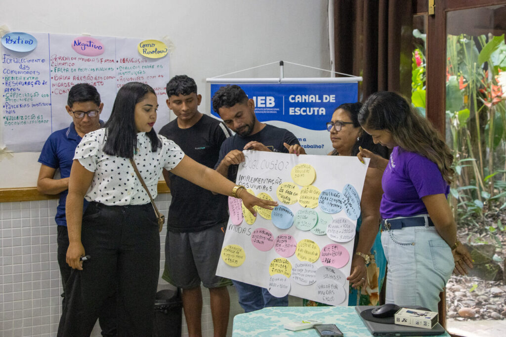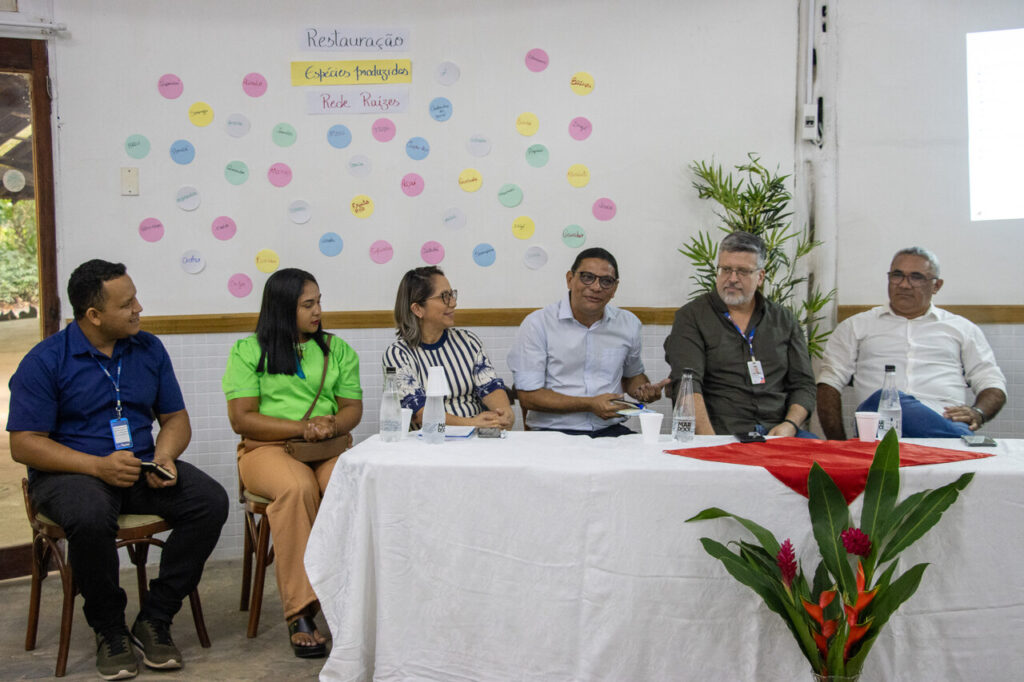O encontro reuniu 20 representantes de comunidades agroextrativistas de Breves, Portel, Curralinho e São Sebastião da Boa Vista, e 8 representantes institucionais que, ao longo dos últimos quatro anos, contribuíram para fortalecer a agenda da restauração produtiva no Marajó, como Agência de Defesa Agropecuária do Estado do Pará (Adepará), Ministério da Agricultura e Pecuária (Mapa), CAIXA Econômica Federal, IDEFLOR-Bio e Secretaria de Estado de Meio Ambiente e Sustentabilidade (Semas).